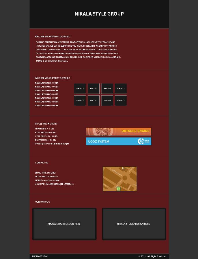 ეს არის NG Style Group ის მიერ დამზადებული უფასო დიზაინი ვებ პორტფოლიოსთვის ძალიან მარტივი კონსტრუქციის დიზაინია და გამოსაყენებლადაც ძალიან მარტივია, შექმნილია მათთვის ვისაც საშუაება არ აქვს შეიძინოს ამ სტილის დიზაინი
